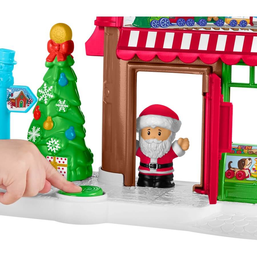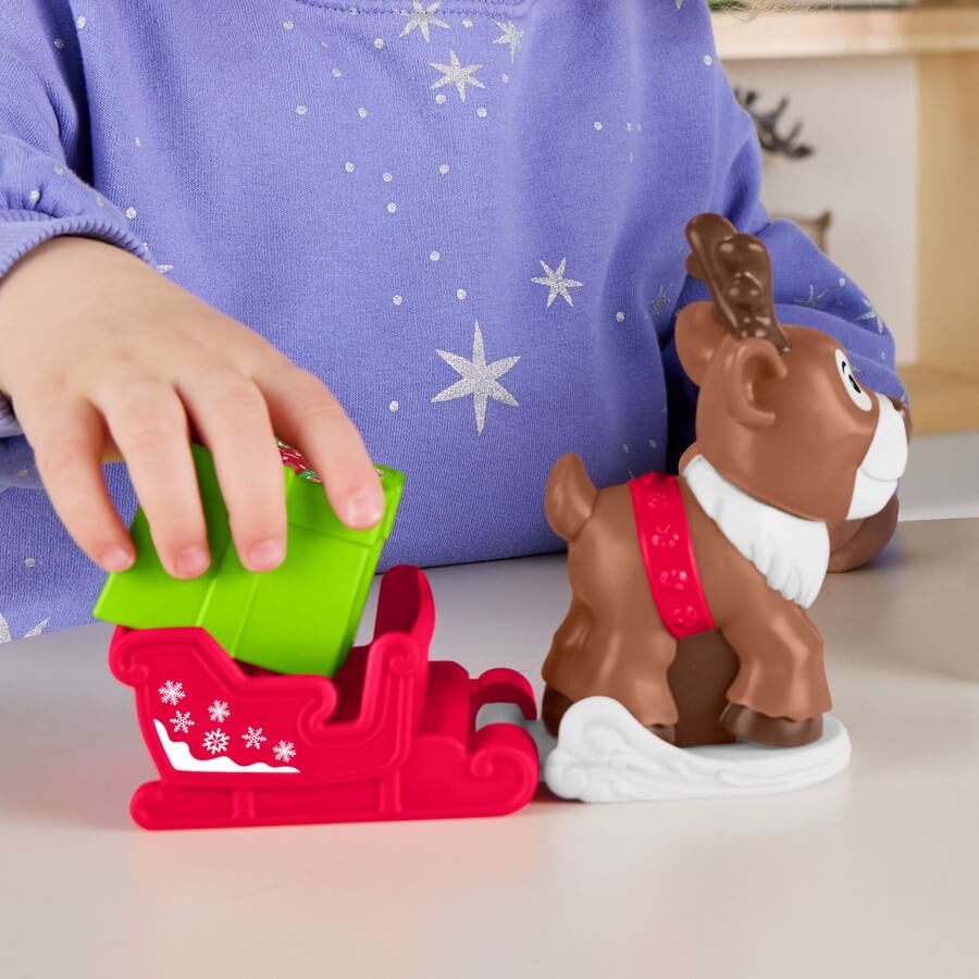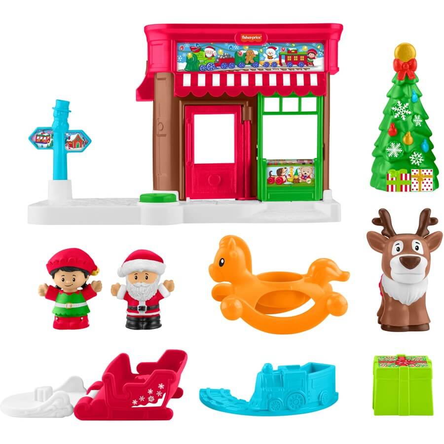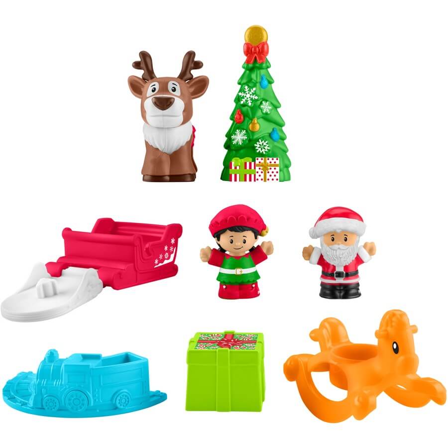 This festive set includes a Santa's workshop playset, 5 storytelling accessories, and 3 Little People figures styled like Santa, an elf and a reindeer.