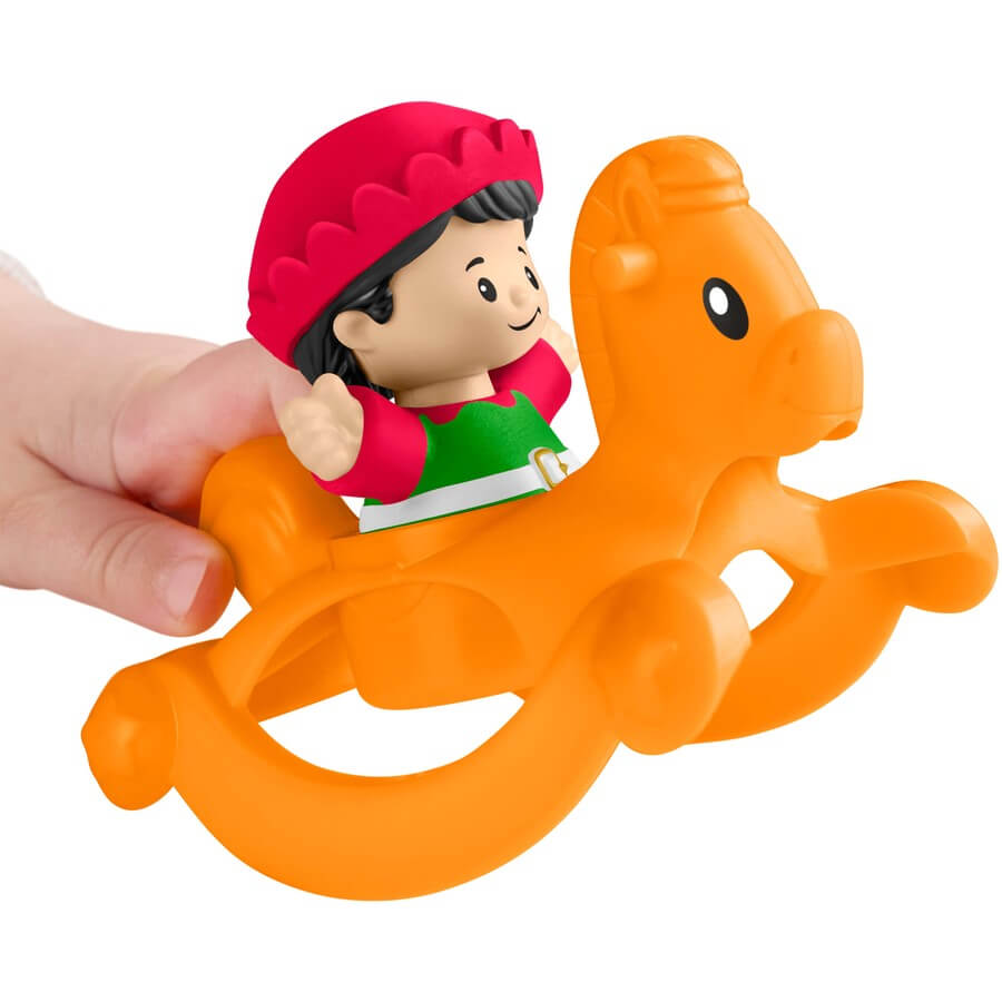 Kids can pop open the door to the workshop, load up the sleigh, and send Santa and his reindeer off to "deliver" presents. Kids will love recreating familiar holiday scenes, like setting up the toy train around the Christmas tree, riding the rocking horse with the elf, and more.