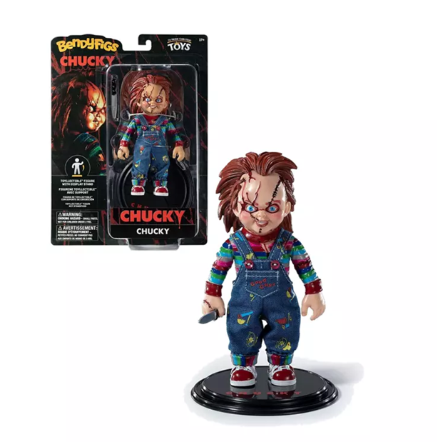 This authentic, intricate bendable figure of the possessed 'Good Guys' doll Chucky from Child Play and the Chucky movies includes a stand for proud display.