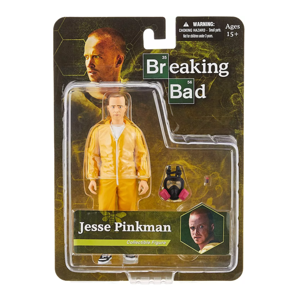 Breaking Bad fans everywhere will want to have this great Pinkman figure! Highly collectable and will sure to be an instant must have. Jesse stands 6-inches tall and comes complete with a respirator mask accessory.