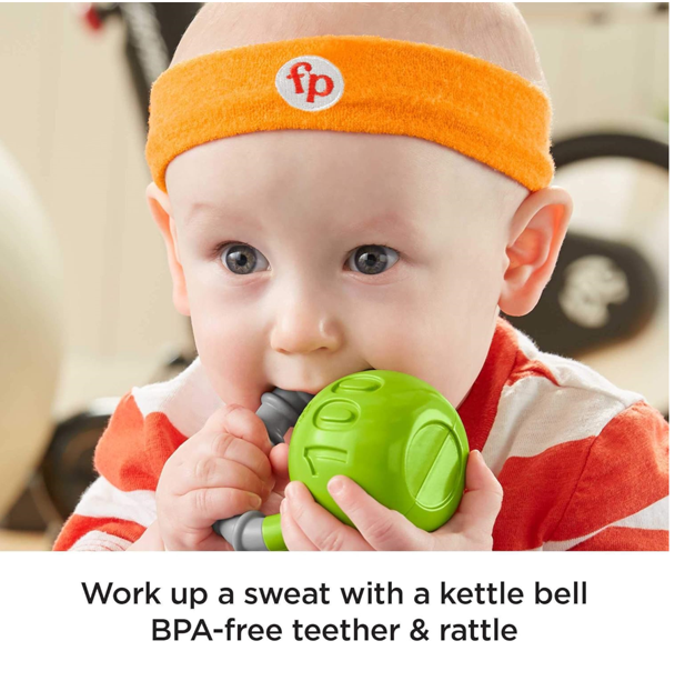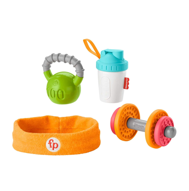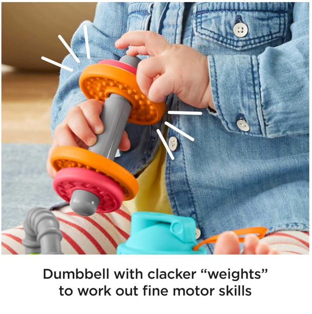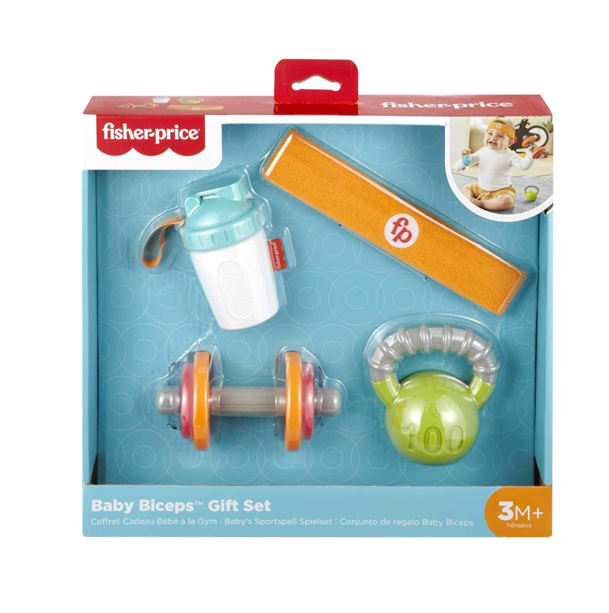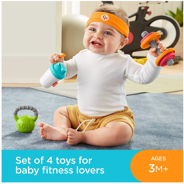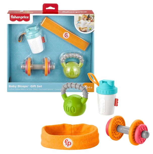 The Fisher-Price Baby Biceps Gift Set features 4 gym-themed baby toys for tiny fitness lovers to pump up at play time.