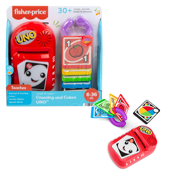 Baby can join in on the family game night fun with the Laugh & Learn Counting and Colours UNO toy from Fisher-Price!