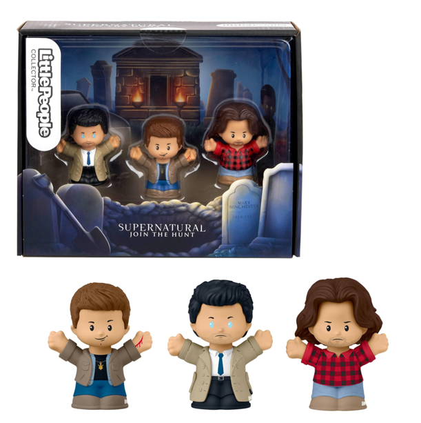 Celebrating the 20th anniversary of the launch of the TV series, this collectable figure set includes brothers Dean and Sam Winchester plus the angel Castiel, all designed in Little People style and decorated in each character's signature looks.