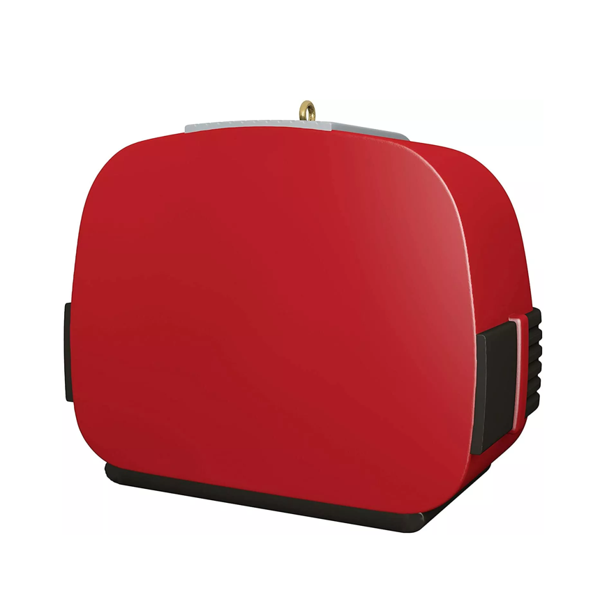 Tune in to this adorable red radio Christmas tree ornament that features a clever design and fun details. A black belt around the radio sports an AM/FM panel, resembling Santa's belt buckle.