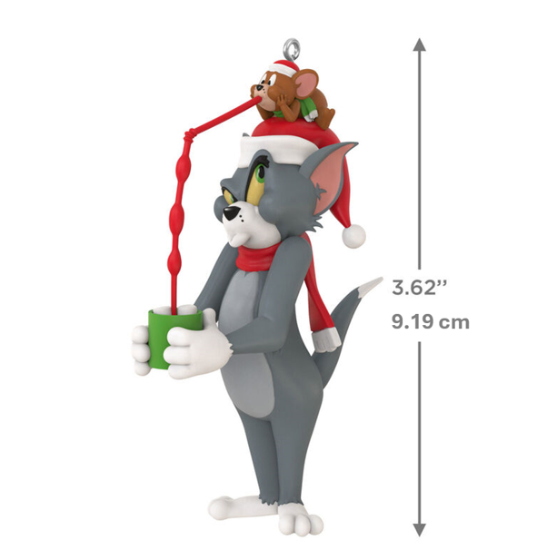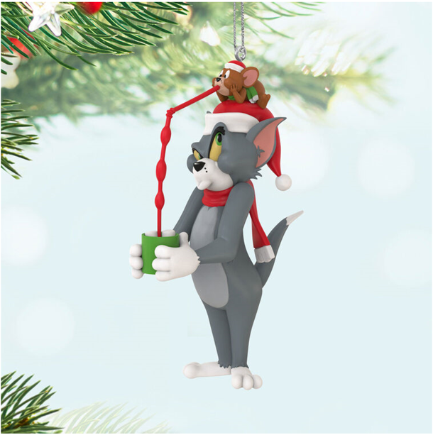 Fans of the classic "Tom and Jerry" cartoons will love revisiting the slapstick antics between rival cat and mouse with this decoration that finds Jerry perched on Tom's head using a super-long straw to sip from his hot cocoa mug.