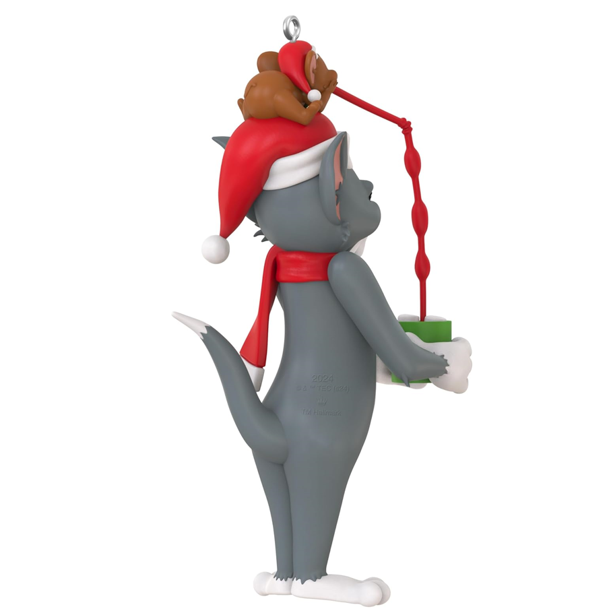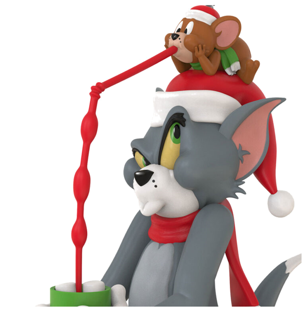 During this season of giving, Jerry cleverly finds a way to make Tom share in this fun Christmas tree ornament.