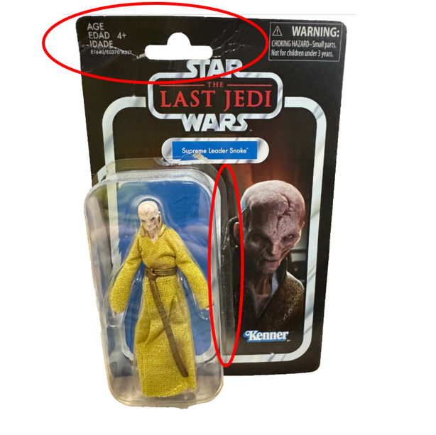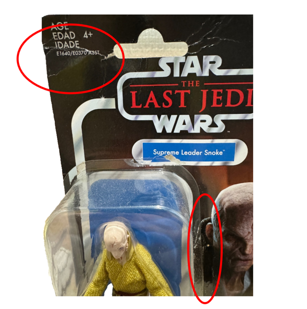 ***PLEASE NOTE: This last Supreme Leader Snoke Action Figure has creases across the top and bottom left of the cardback packaging and the plastic bubble has been taped back on and so the price has been reduced to compensate. Please see attached pics***