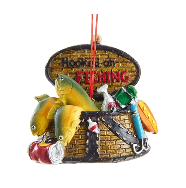 This "Hooked On Fishing" fishing basket ornament from Kurt Adler is a fun and festive addition to your holiday décor or Christmas tree.