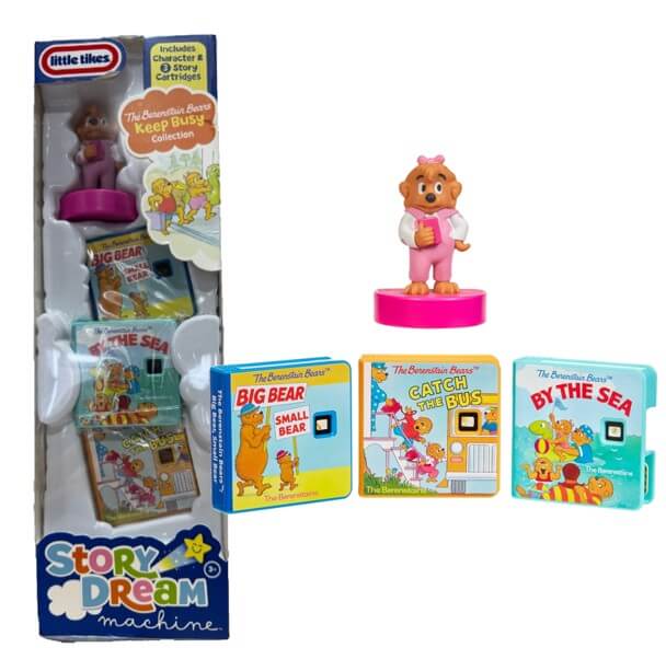 The Berenstain Bears™ Keep Busy Collection for the Little Tikes® Story Dream Machine™ includes 3 stories and 1 Sister Bear character that adds light effects in nightlight mode.