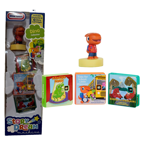 The Dino Collection for the Little Tikes® Story Dream Machine™ includes 3 stories and 1 Little Dinosaur character that adds light effects in nightlight mode.