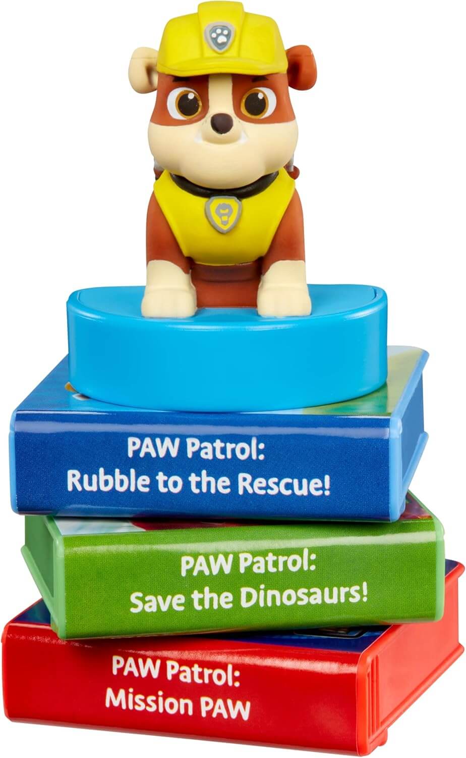 PAW Patrol Exploration Collection for the Little Tikes® Story Dream Machine™ includes 3 PAW Patrol stories and 1 Rubble character that adds light effects in nightlight mode.