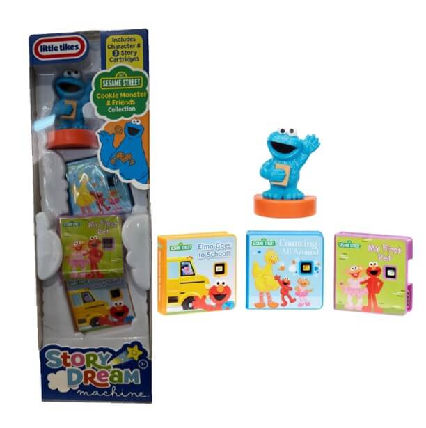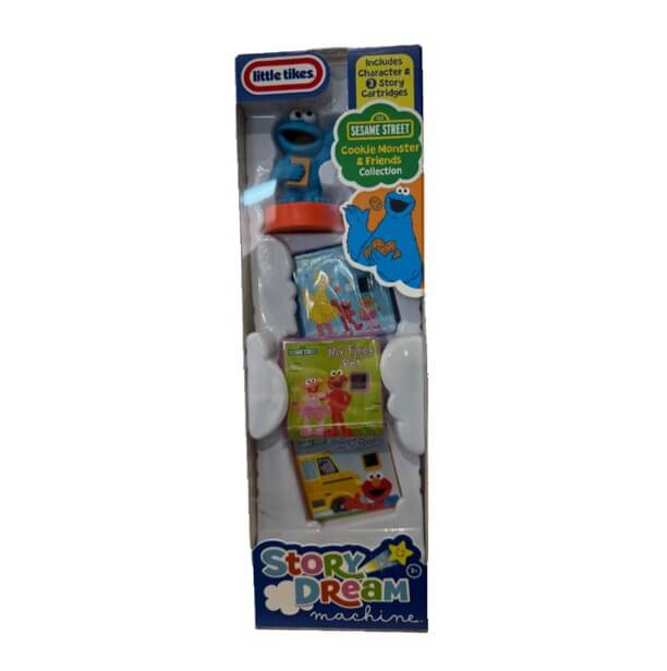The Sesame Street™ Cookie Monster & Friends Collection for the Little Tikes® Story Dream Machine™ includes 3 stories and 1 Cookie Monster character that adds light effects in nightlight mode.