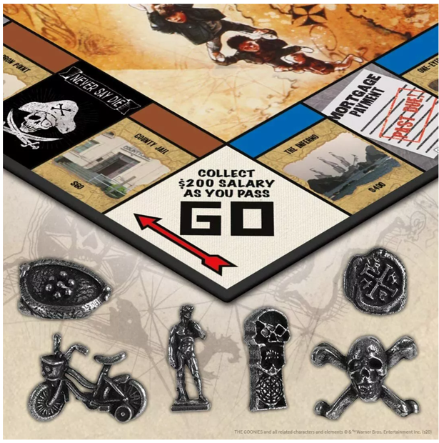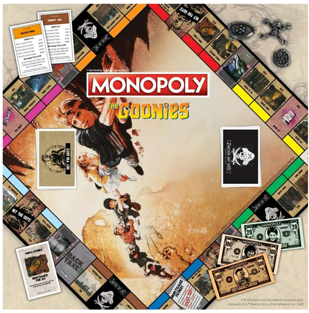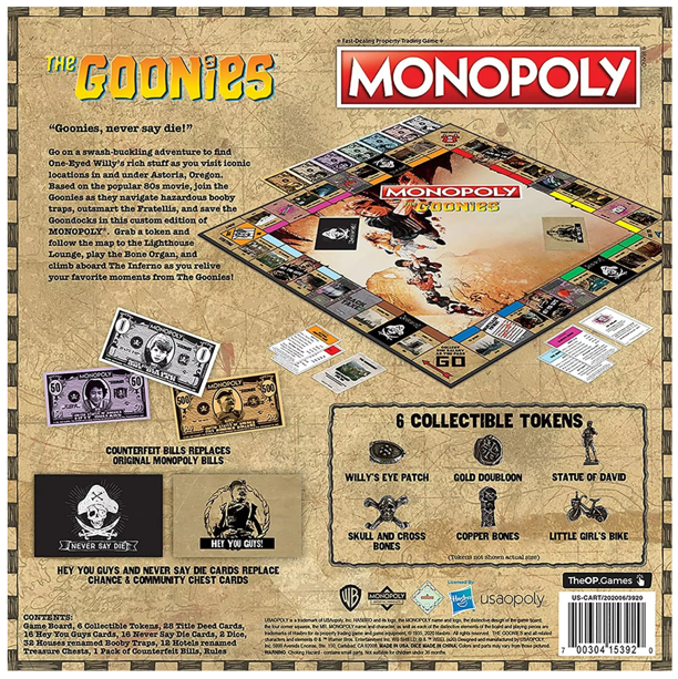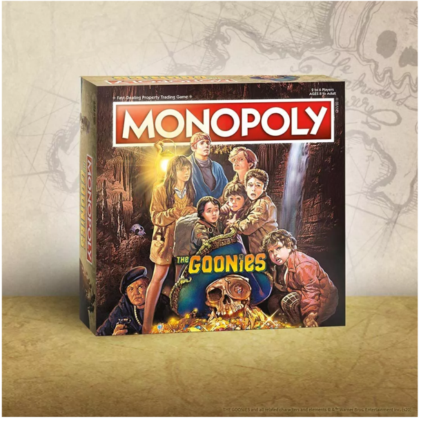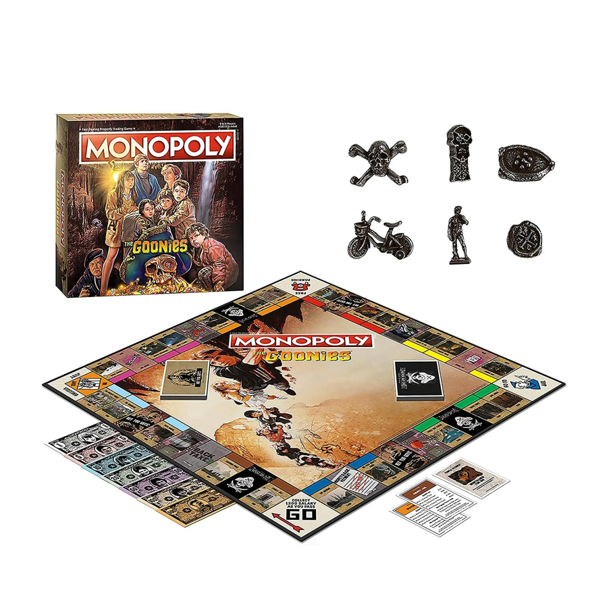 This special edition features custom sculpted tokens, themed cards, and unique gameplay elements that bring the adventure of The Goonies to your game table. Houses are renamed Booby Traps, Hotels become Treasure Chests, making every aspect of this classic board game true to the beloved film.