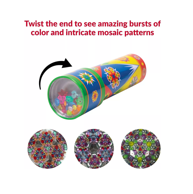 Each turn creates a magical, intricate and iridescent mosaic that will dazzle and delight. Made out of metal, you get the timeless tin toy feel that is lacking in plastic and cardboard kaleidoscopes. As educational as it is entertaining, this classic kid's kaleidoscope fosters creativity, imagination and constant fascination.