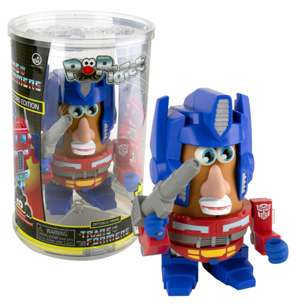 The 4" POPTaters Transformers Optimus Prime comes with 11 interchangeable parts, including one surprise, original Potato Head piece. The 4" body nearly doubles in size with accessories on.