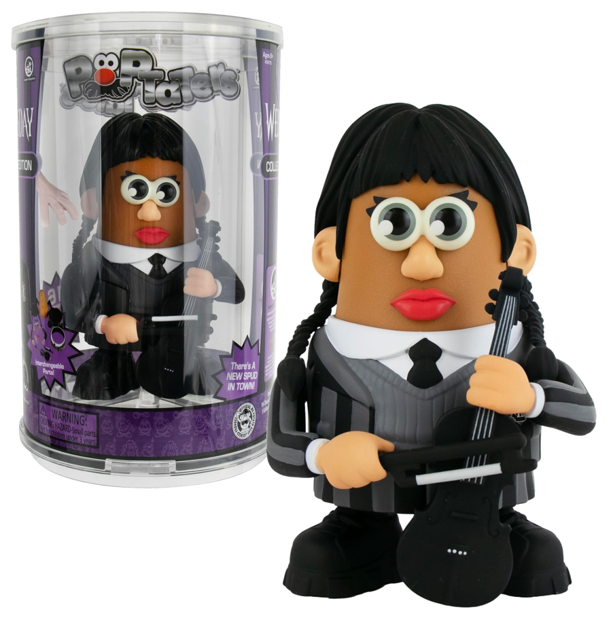 Poptaters Wednesday includes 16 removable, interchangeable facial and body parts including one surprise Potato Head original piece! Poptaters are sold in a clear, stackable, collector display package. Stack and display your entire collection!