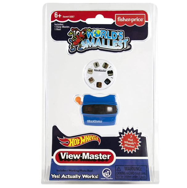 The classic View-Master toy has been entertaining children for generations! World's Smallest Hot Wheels View-Master works just like the original, full-sized version and features 7 different Hot Wheels images.