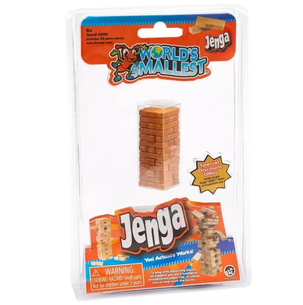 Jenga, the original wood block game that families have loved for generations is now available in the world's smallest size!