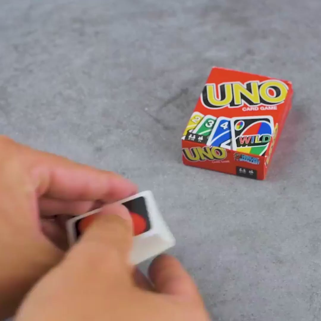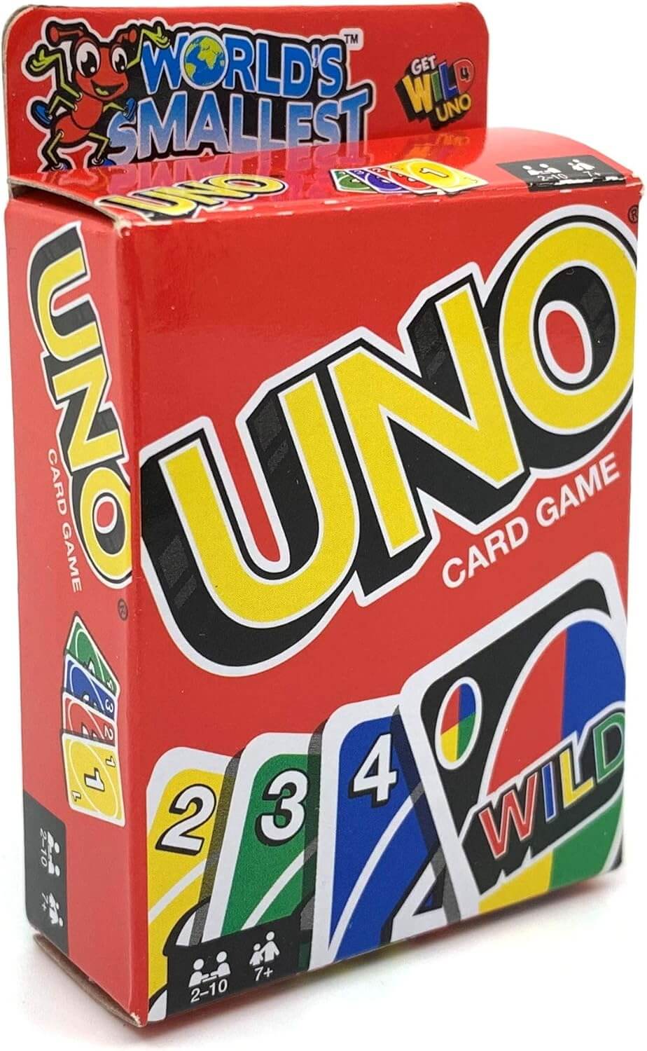 This edition is the tiniest version of the classic Card Game UNO! Quick, exciting and fun for everyone! Play by matching colour, number or play an action card against your opponent. When you're down to one card, don't forget to yell UNO!