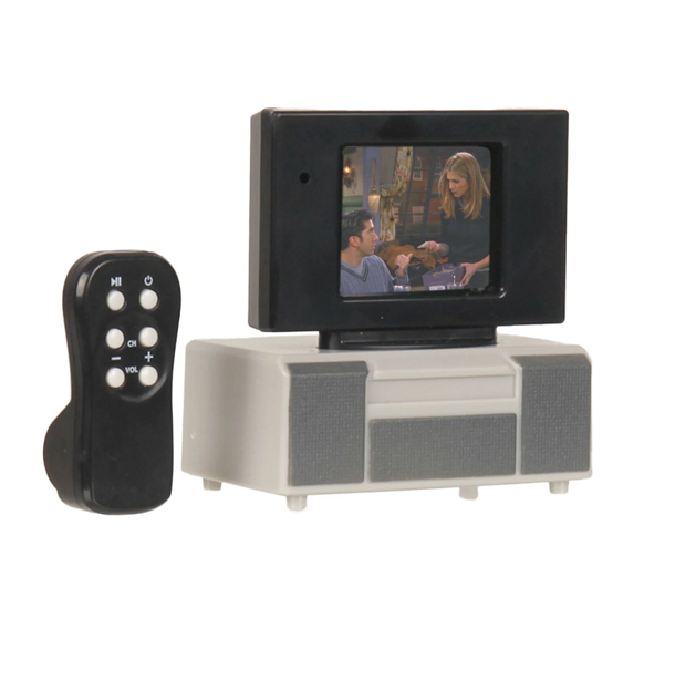 Each Tiny TV comes with a remote, that really works! That's right! Use your remote to turn your Tiny TV on, sit back, and enjoy channel surfing from scene to scene! The laughs never STOP! When you're done, place your Tiny TV and remote on the custom backdrop scene (included) to really show off your Tiny TV.