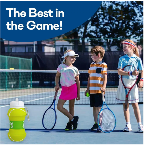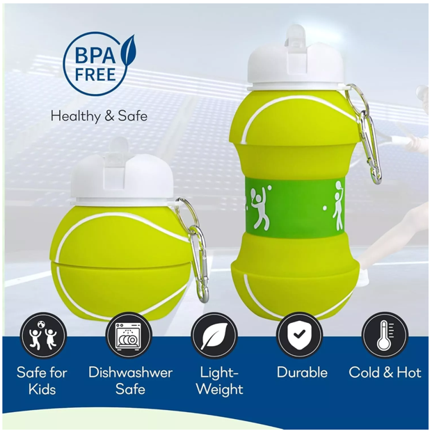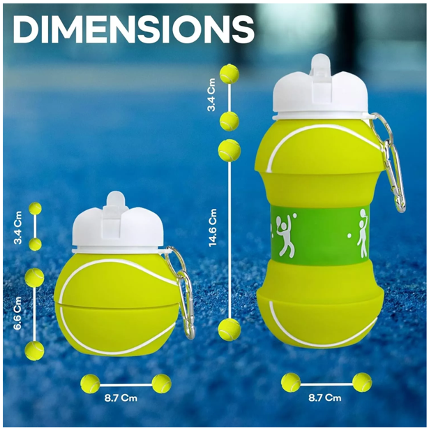 This collapsible tennis ball sports drink bottle is dedicated to keeping you hydrated with style and sustainability.